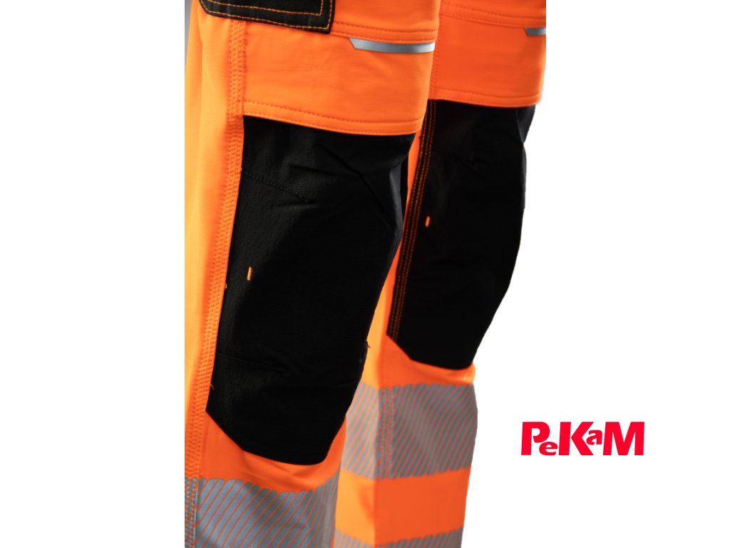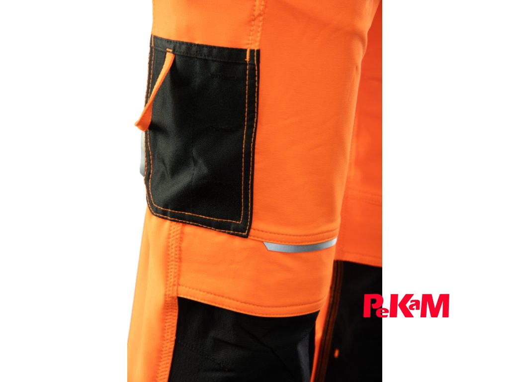 Pre praktické využitie sú vybavené viacerými funkčnými vreckami: dvoma zadnými vreckami, zosilnenými bočnými vreckami, dvoma montérkovými (assembler) vreckami a samostatným vreckom na mobilný telefón. Bezpečnosť pri práci zvyšujú 7 cm reflexné pásy FLEX-PRO.